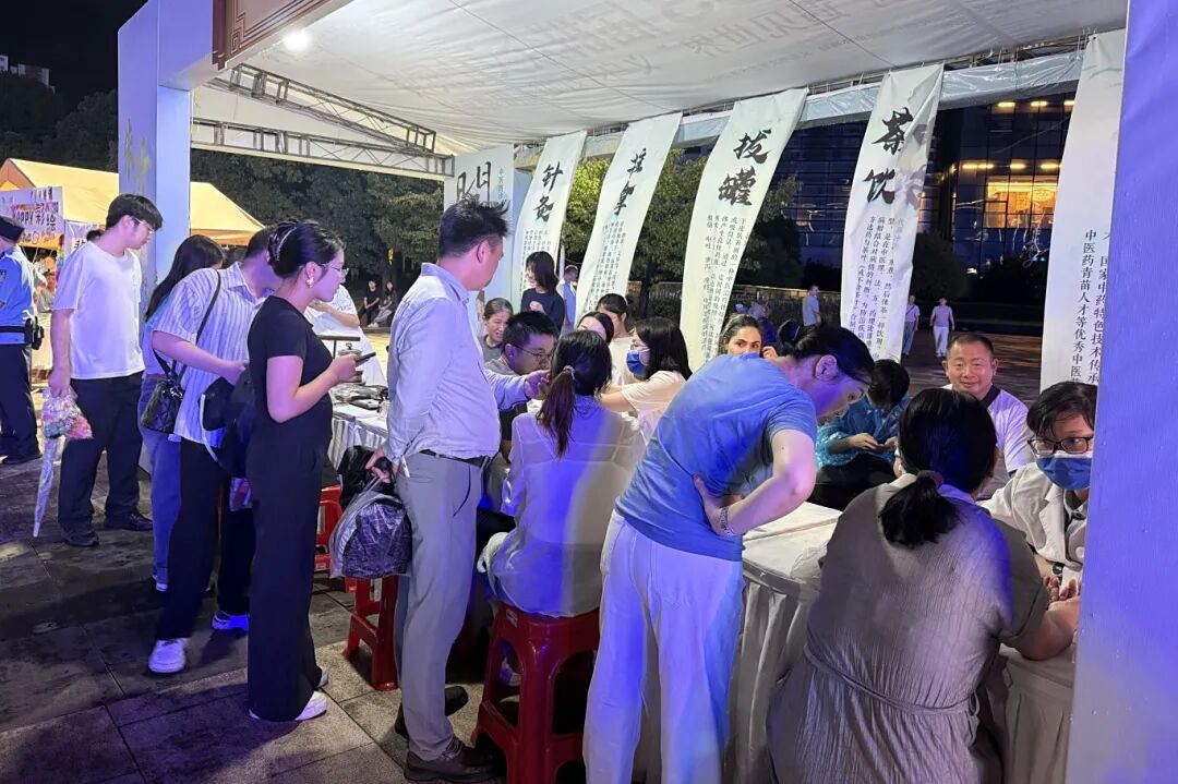 中医健康服务区成为了活动的热门打卡点。义乌市中医医院的专家们坐诊于此,为市民提供免费的中医诊疗服务。他们通过中医体质辨识精准判断市民的身体状况,并开具个性化的养生建议。一位前来就诊的市民感慨道:“平时工作忙,很少有时间去医院做全面的检查,这次活动让我在家门口就能享受到专业的中医服务,真是太方便了。”特色疗法体验区同样人气爆棚。针灸、推拿、艾灸、拔罐、耳穴压豆等传统中医疗法,让市民亲身体验到了中医药的神奇魅力。一位来自伊朗的国际友人Iranian Friend 刚体验完拔罐,兴奋地说:“做完拔罐后,感觉浑身都轻松了,中医药疗法真的很有效。”